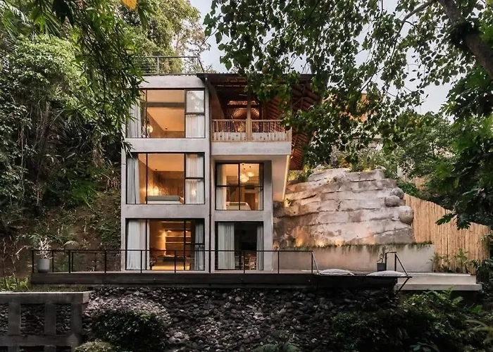 De gesitueerde in Ubud Bamboolina Art Villa Ubud is op 10 minuten rijafstand van de Goa Gajah (Olifantengrot) gelegen en biedt toegang tot een terras met een zwembad. Deze 6-badkamer villa heeft een privézwembad en ligt binnen 3 km van het Apenwoud van Ubud.